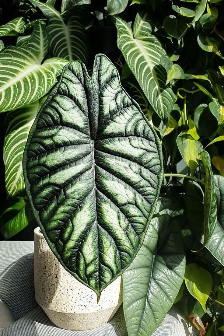 Алоказия – это декоративно-лиственный комнатный цветок из семейства Ароидных. Растение привлекает внимание своими крупными, часто асимметричными листьями с разнообразными узорами. В природе алоказии произрастают в тропических лесах Юго-Восточной Азии и Индии. Алоказия Блэк Вельвет – один из самых эффектных видов с темно-фиолетовыми листьями, создающими впечатление бархатной поверхности. Алоказия Полли – компактный сорт с темно-зелеными листьями, украшенными белыми или серебристыми полосками. Алоказия Кожа Дракона – имеет необычные асимметричные листья с ярко выраженными жилками. Алоказия Купрея – характеризуется плотными, кожистыми листьями, с бронзово-зеленым отливом. Алоказия Жаклин - редкое тропическое растение нефритового цвета с темно-зелеными прожилками на листьях. Все виды алоказий требуют: Освещение – яркий рассеянный свет; Полив – регулярный, без застоя воды. Из личных рекомендаций, которые намного облегчат уход- фитильный полив: Влажность – повышенная, желате