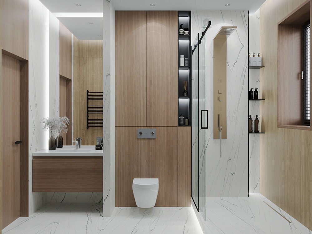 использования. При, разработки дизайн-проекта душевой комнаты, дизайнер интерьера Ирина Романова основывалась на простых минималистичных формах с применением обилия разнопланового света. Планировочное решение разработано таким образом, чтобы две основные