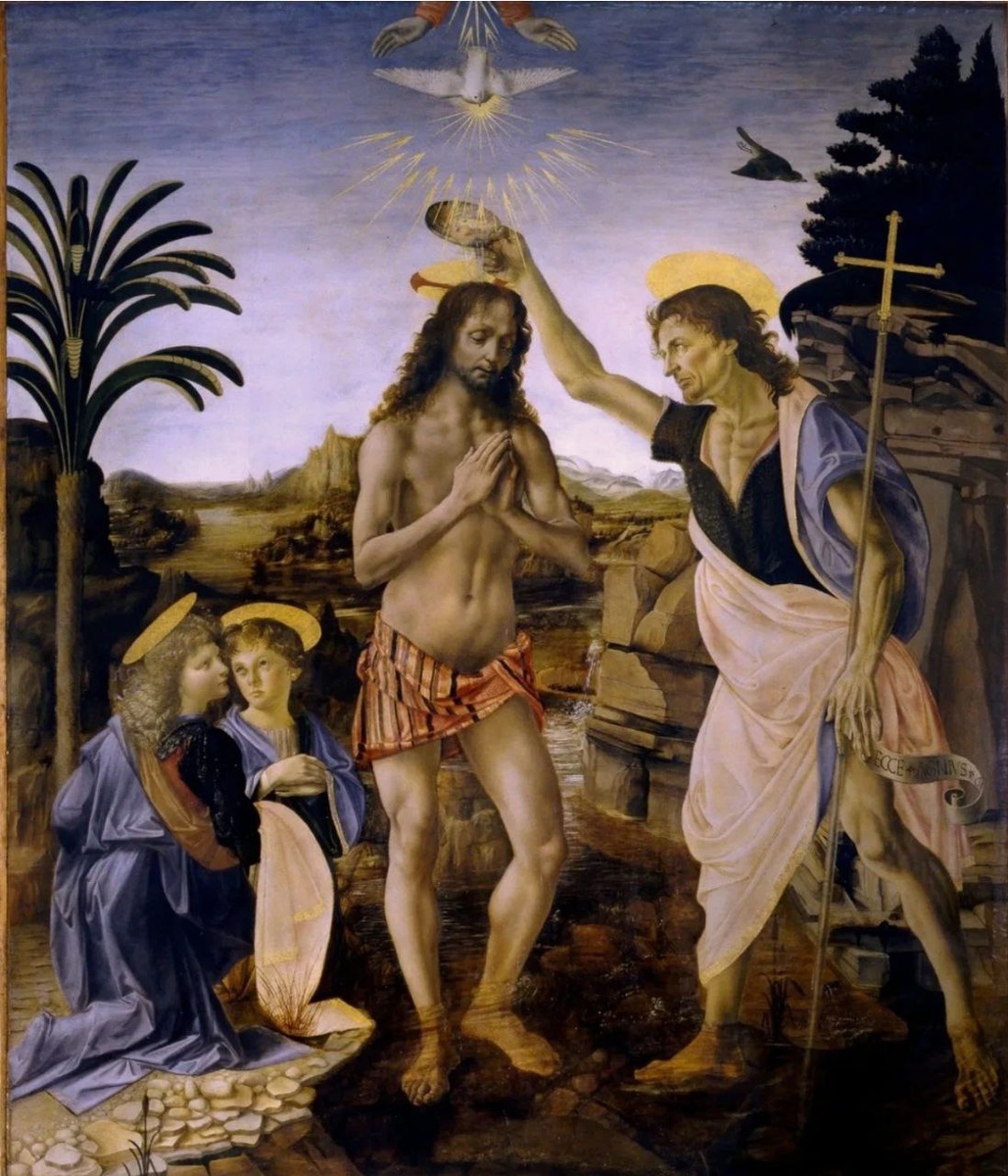 💥«Крещение Христа», которое висит сегодня в Галерее Уффици во Флоренции, датируется приблизительно 1472 годом, когда Леонардо было двадцать