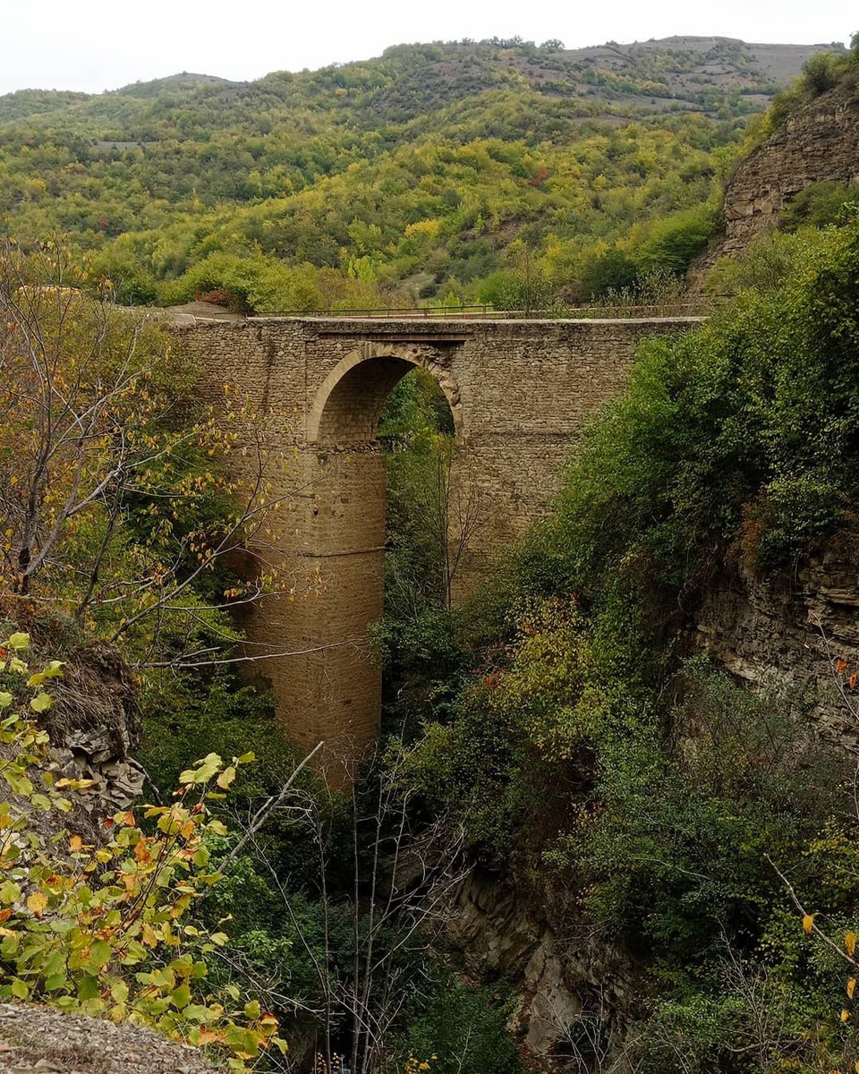 Дорога уже знакома. Справа на горе крепость, далее Ханагский водопад, но мы едем мимо ( все это видели в 2020 году) проезжаем реку, любуемся красивым старинным мостом ( на него можно смотреть вечно). Кирпичная кладка моста уходит глубоко в каньон, как бы продолжая отвесные скалы, сливаясь в одно целое. Внизу где-то далеко шумит река.