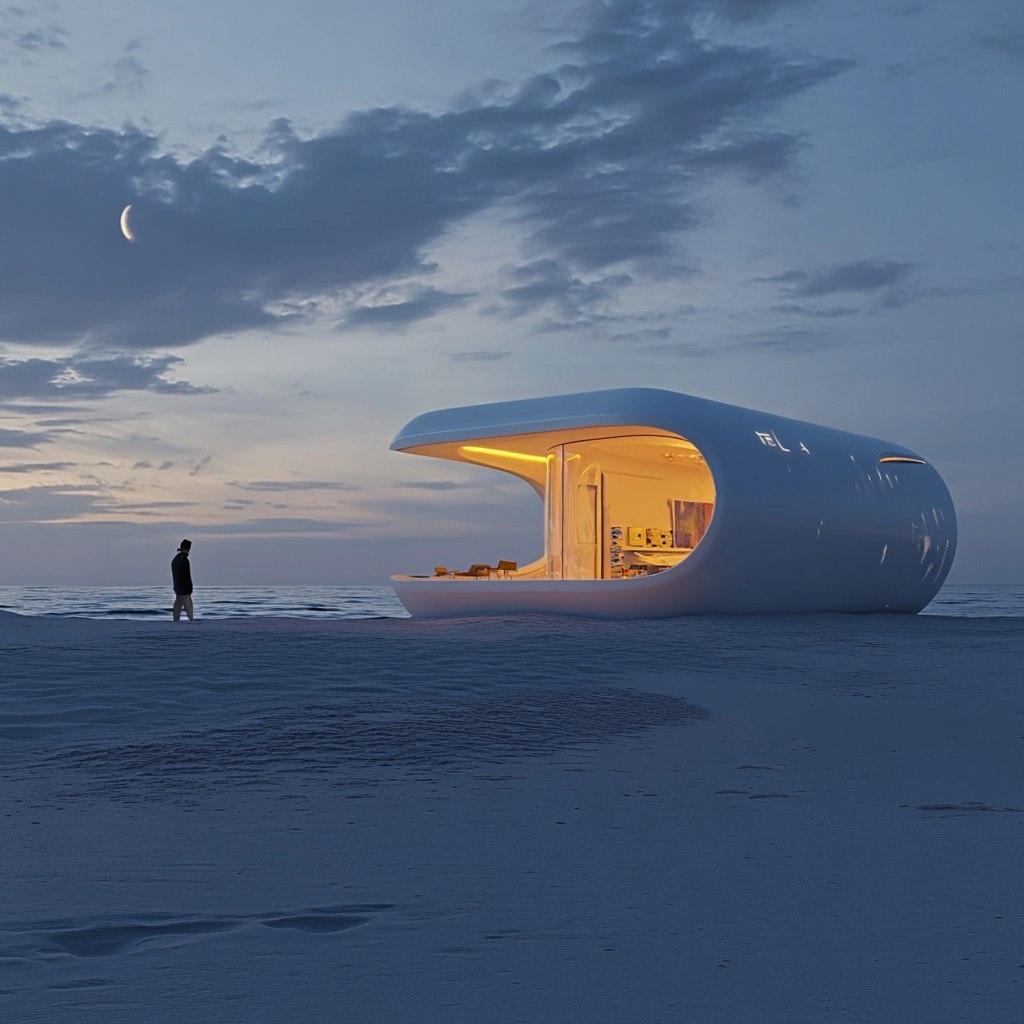 Создано на основе запроса: beach side pop ip store for lost and find items futuristic minimalistic unique attractive engaging design