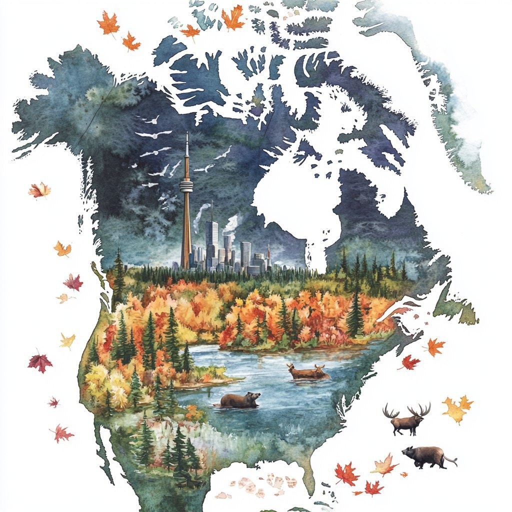 Создано на основе запроса: A detailed watercolor map of Canada only, excluding the contiguous USA to the south but including Alaska to the northwest, in a 3:2 aspect ratio and 300 DPI. The map should highlight major landmarks such as the CN Tower, Banff National Park, and Niagara Falls, surrounded by local flora and fauna like maple leaves, moose, and beavers. Include clear definitions of the specific provinces, with vibrant colors and artistic detailing to enhance the natural beauty of Canada." --- Автоперевод: Подробная карта акварели только Канады, за исключением смежных США на юге, но включая Аляску на северо -запад, в соотношении сторон 3: 2 и 300 DPI. Красиво получилось? 🤔 https://dzen.ru/id/65c0c65c86e4f837c27b24d7 #ИИ #AI #нейросеть #midjourney #art