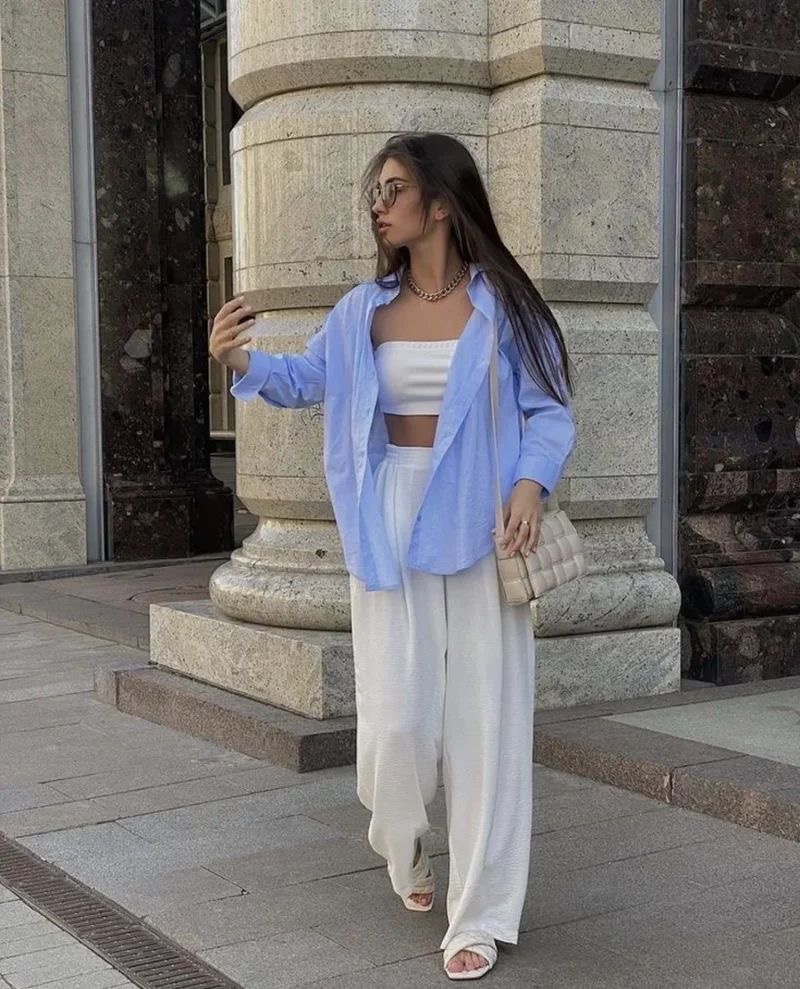 Майские — это шашлыки, пикники, прогулки за город и первые настоящие выходные на природе. Но даже в лесу или у реки хочется выглядеть не как «случайно проснувшийся турист», а как человек, у которого есть вкус — и к стилю, и к жизни. Делимся тремя образами, которые одновременно удобны, уместны и классно смотрятся на фото. Для: прогулки, пикника на поляне, поездки в деревню Цветовая гамма: песочный, белый, голубой, светло-серый Этот образ выглядит легко и расслабленно, но собранно. Отличный вариант, если после пикника заехать в кафе или поехать на вечернюю встречу с друзьями. Для: вылазки с шашлыками, активных игр с детьми, прогулок у воды Цветовая гамма: хаки, беж, тёмно-синий, терракотовый Такой образ хорошо работает и при +16, и при +23, особенно если погода переменчива. Всё практично, но выглядит сдержанно-стильно, не в духе дачного кэжуала нулевых. Для: загородных фотопрогулок, романтики на фоне природы, поездки в дом отдыха Цветовая гамма: лаванда, шалфей, белый, пыльно-розовы