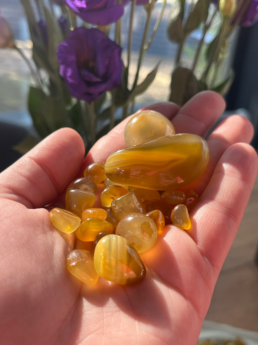 Я не знаю, есть ли среди вас те, кто дочитал такой длинный рассказ и задался вопросом: а зачем все это нужно было? 😅 На всякий случай отвечу. А вот просто захотелось! Кто-то грибы собирает, а я - агаты. Их скопилось у меня довольно много. Я уже много раз говорила о том, что мне нравятся все этапы «работы» с камнем. Поиск, обработка, распиловка, изучение чего-то нового, в конце концов. Сначала я научилась делать кабошоны, распиливать агаты и нарезать их на пластины-заготовки. Резьба фигурок, бор машинкой в процессе изучения. Возможно, с осени появится возможность попробовать себя даже в огранке. И галтовка, как один из способов обработки, мне была всегда интересна. И столько еще впереди возможностей и желаний! Чего и всем желаю.