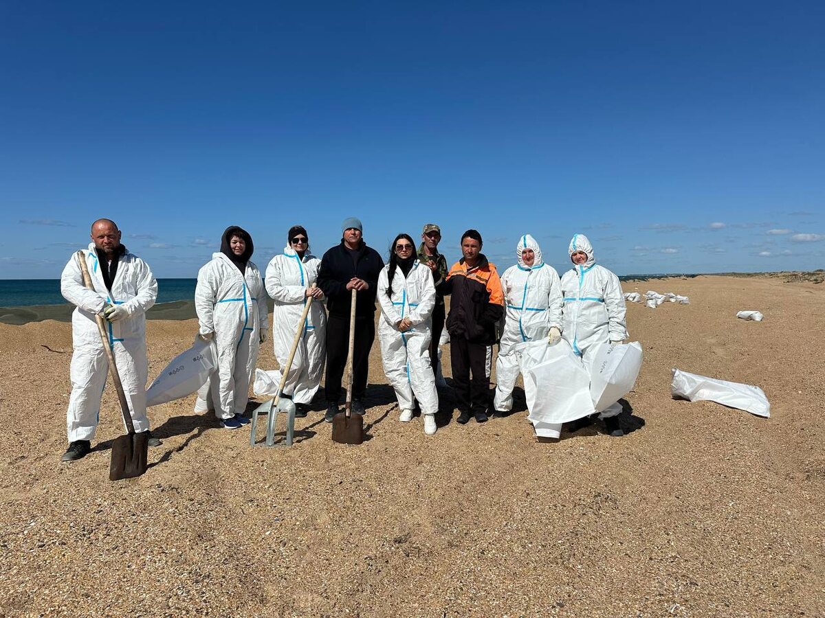 Каждый день команда Крымского района убирает мазут на участке берега Черного моря в Витязево