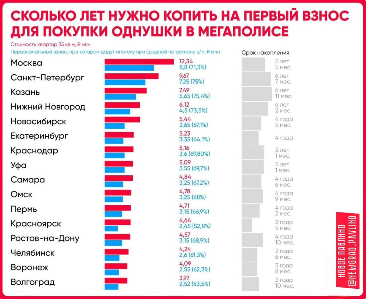 🏠 Первый взнос по ипотеке вырос до 70% от стоимости жилья в России, — РБК. При средних зарплатах получить кредит с низким взносом не получится, в миллионниках надо накопить как минимум 53% от стоимости квартиры. НОВОЕ ПАВЛИНО Прислать новость|Подписаться🎈