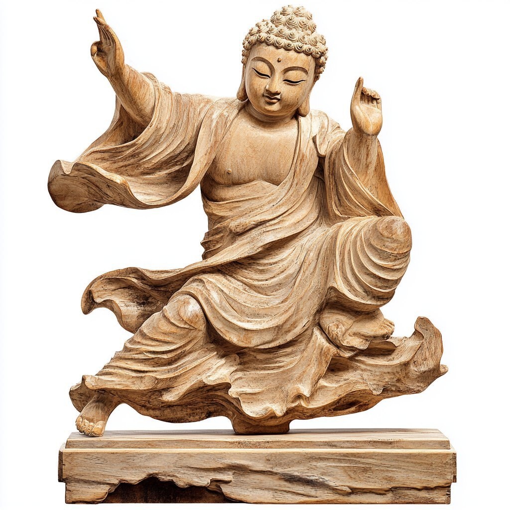 Создано на основе запроса: A wooden Buddha statue. Photo quality. Japanese style. No background. The whole figure is depicted. There are various expressions and poses, such as jumping, dancing, and lying down. --- Автоперевод: Деревянная статуя Будды. Интересно вышло? 🤔 https://dzen.ru/id/65c0c65c86e4f837c27b24d7 #ИИ #AI #нейросеть #midjourney #art