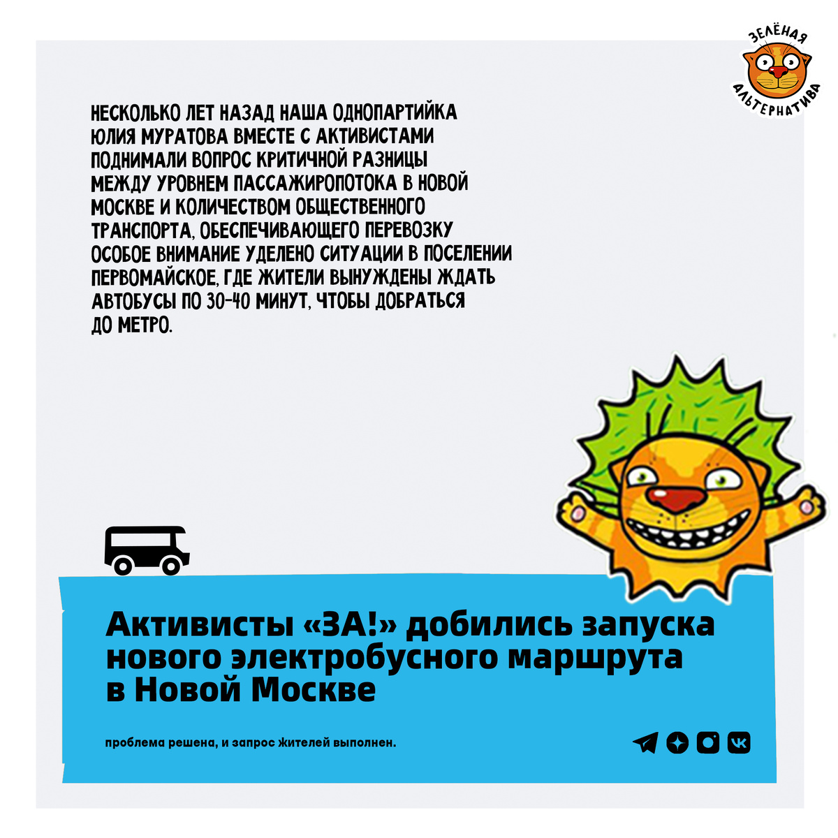 Активисты «ЗА!» добились запуска нового электробусного маршрута в Новой Москве