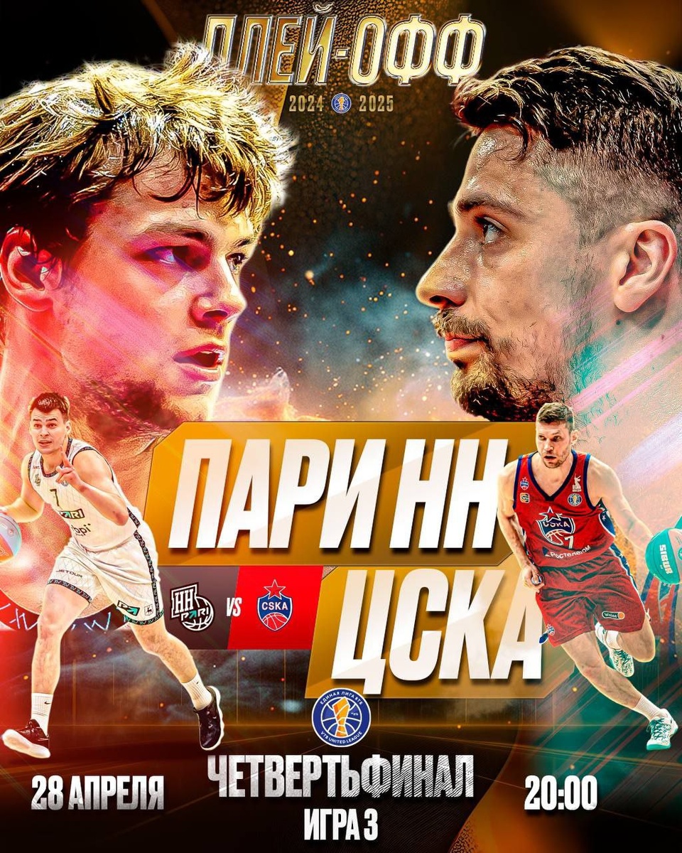 В 20:00 посмотрим в «Нагорном» третий матч четвертьфинала Единой лиги ВТБ «Пари НН» - ЦСКА. В серии до трех побед «армейцы» ведут 2:0. Станет ли эта игра последней для «Пари НН» в текущем сезоне, или сможет команда Сергея Козина сегодня одолеть именитого соперника, узнаем совсем скоро. Болеем за наших и смотрим матч в прямом эфире ЗДЕСЬ 🏀