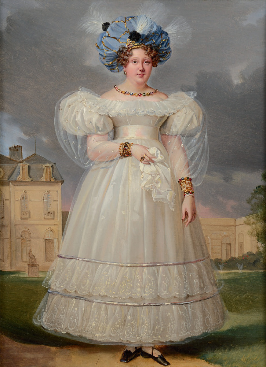 «Лицо свежее и красивое, не типично Бурбонское, кожа белая с румянцем, глаза чёрные. Очень полная, ноги короткие» — сказала свекровь Мария Каролина.