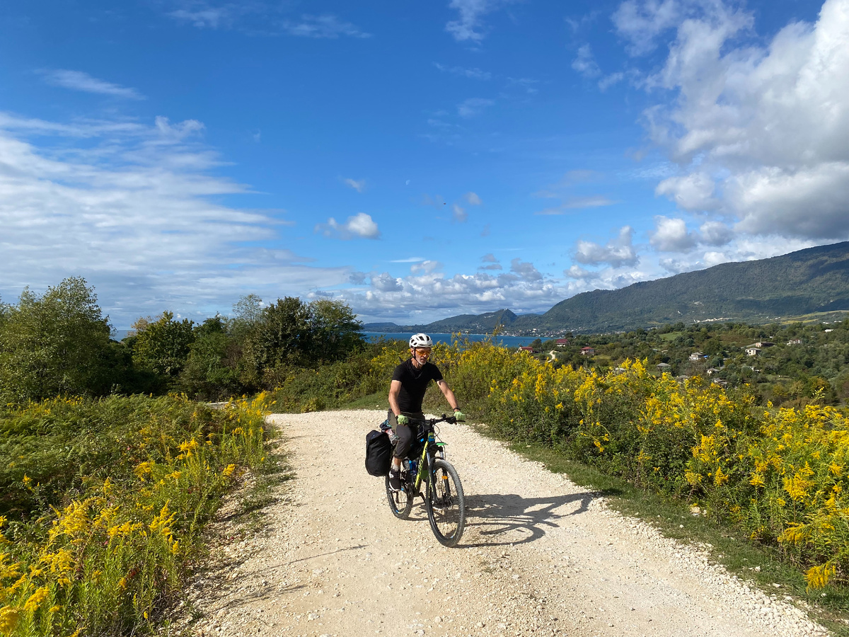 Утром мы проснулись в красивом месте на берегу моря. Люблю велопутешествия за эти приятные сюрпризы ) Погода обещала быть хорошей и мы поехали в сторону Сухума, конечной точки нашего путешествия. Поехали не по основной дороге, а по Бзыбскому шоссе, вдоль моря. И весь день нам было красиво! Очередная заброшка на нашем пути - бывший санаторий. Огромное здание давно заброшено и разрушается. Но когда-то здесь было красиво... а сейчас природа постепенно поглощает брошенное человеком строение. Около бывшего санатория мы обнаружили обустроенный термальный источник. Школа в пос. Шицквара Море где-то рядом А мы едем по красивой дороге! В пос. Эшера мы обратили внимание на этот дом. Частично разрушенный, со следами обстрелов, он оказался жилым. Больше 30 лет прошло с той войны, а люди до сих пор живут в разрушенных домах. Мне такая ситуация непонятна ... Памятник погибшим в войне 1992-1993 гг. Мемориальный комплекс первого президента Абхазии Владислава Ардзимба Владислав Ардзинба – первый пр