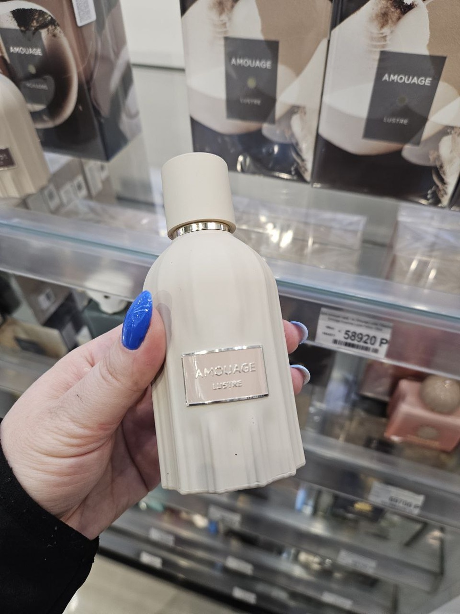 В дьюти-фри Шереметьево внезапно обнаружились амуажевские экстракты. Но только два. Третий не довезли. Lustre - густые смолы, много мирры, ирисовое масло и ваниль. Мне почему-то напомнил их же Material. Интересно, почему? Reasons - собирательный образ всех современных амуажей в зеленых флаконах. Минеральность, специи, соль с кардамоном, деревянный сруб и банные веники. *Оба аромата вполне могли бы выйти в основной линейке, но 58920 рублей сами себя не заработают💰 **Флаконы больше похожи на диспенсеры для жидкого мыла😇 Кто пробовал The Essences Amouage? Как вам?