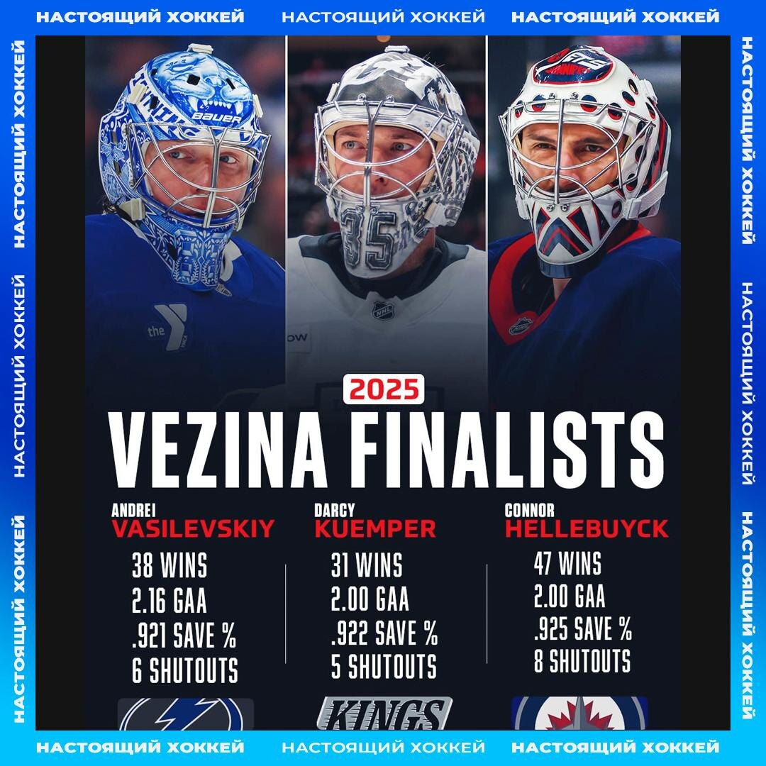 ⚡️🏒 НХЛ назвала трёх номинантов, среди которых определят лучшего голкипера в регулярном чемпионате в нынешнем сезоне