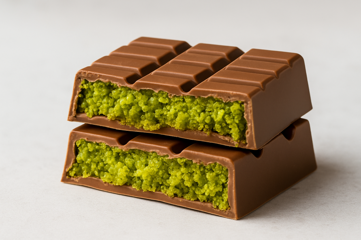 Дубайский шоколад — это батончик, который взорвал TikTok в 2024 году, став настоящим гастрономическим трендом. Его яркая зелёная начинка, хрустящая текстура и экзотический вкус сделали его звездой соцсетей. Но за популярностью скрываются вопросы: что это за лакомство, почему оно стало сенсацией и стоит ли его пробовать? Особенно после слухов о том, что в некоторых партиях нашли вредные вещества. Дубайский шоколад — это не просто конфета, а настоящий десерт в форме батончика. Его создала компания Fix Dessert Chocolatier из Дубая под названием Can’t Get Knafeh of It. Батончик состоит из молочного шоколада, внутри которого — начинка из фисташкового крема, тахини (пасты из кунжута) и хрустящего кадаифа — измельчённого слоёного теста, традиционного для ближневосточного десерта кнафе. Внешне батончик украшен яркими пятнами съедобной краски, что делает его идеальным для фото в соцсетях. Тренд начался в 2021 году, когда британка египетского происхождения Сара Хамуда, живущая в Дубае, придума