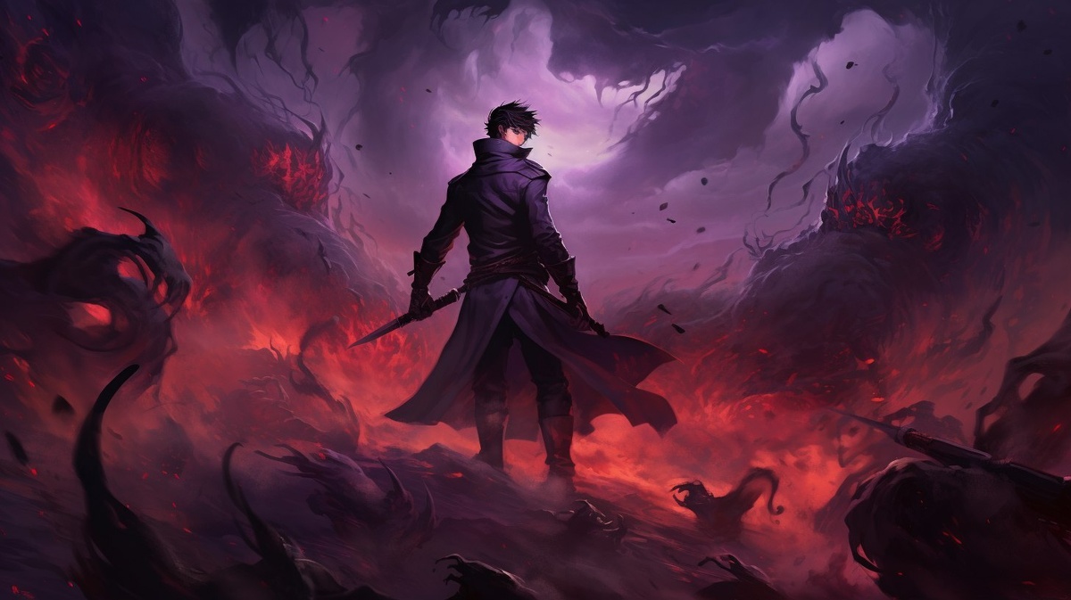 Создано на основе запроса: Sung Jin-Woo from solo leveling anime leading shadow army, soldiers emerging from darkness, high-detail anime illustration, swirling mist, dramatic lighting, fantasy battlefield, epic pose, dark purple and black tones --- Автоперевод: Sang Jin-Woo из сольного выравнивания аниме, ведущая теневая армия, солдаты, выходящие из тьмы, аниме-иллюстрации с высоким содержанием аниме, кружащий туман, драматическое освещение, фэнтезийное поле битвы, эпическая поза, темные фиолетовые и черные тона Как тебе такая картинка? 🤔 https://dzen.ru/id/65c0c65c86e4f837c27b24d7 #ИИ #AI #нейросеть #midjourney #art