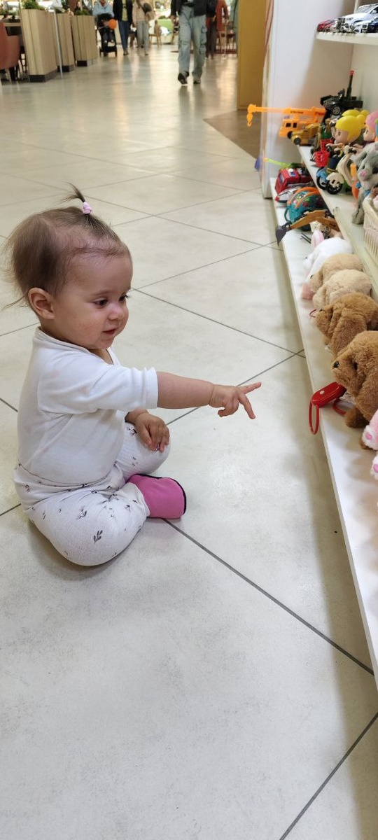 Кстати, Арианна сегодня впервые в ТЦ с того дня, как научилась ходить)) Поэтому ее было не остановить 😂 Выставляет вперёд палец, говорит свое фирменное "ииии!" и восторженно мчит то к одному, то к другому яркому объекту 😁 А уж когда она увидела кучу мягких игрушек 😍 Обожаю, просто обожаю наблюдать за тем, как она открывает мир. 💛