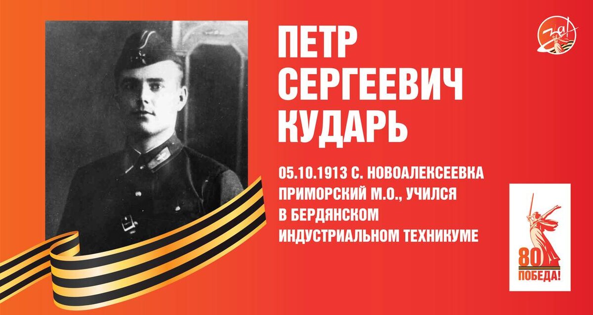 ❤️ Телеканал «За!ТВ» продолжает серию публикаций «Герои Советского Союза, жившие в Запорожской области». Пётр Сергеевич Кударь — лейтенант, командир эскадрильи 249-го истребительного авиаполка (44-й истребительной авиадивизии, 6-й армии, Юго-Западного фронта). С августа 1941 года — на фронтах Великой Отечественной войны, командовал эскадрильей 249-го истребительного авиаполка (44-й истребительной авиадивизии, 6-й армии, Юго-Западного фронта). Участвуя в битве за Москву, совершил 155 боевых вылетов на штурмовку, воздушную разведку, сопровождение самолётов, патрулирование. В результате произведённых им штурмовок было уничтожено 12 танков, 150 автомашин, около 5 артиллерийских орудий, 80 конных подвод, около 800 солдат и офицеров противника. За 2 месяца боевых действий эскадрилья Кударя совершила 431 боевой вылет, нанеся немецким войскам большие потери. 30 октября 1941 года во время боевого задания самолёт Кударя был подбит, а сам лётчик получил тяжёлое ранение. Кударю удалось довести с