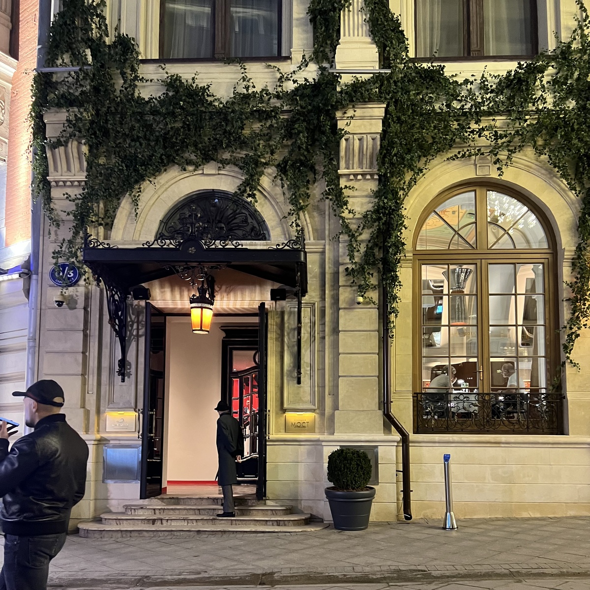 Итак, центр города, Большой и Малый театры, ЦУМ, пересечение Кузнецкого моста и Петровки, все проходы-тротуары вновь в полноценном уличном ремонте. Несмотря на заверения товарища Собянина о том, что его плитка будет служить десятилетия, ее в очередной раз меняют: зима закончилась, скоро лето, а город все еще по зимней плитке ходит – непорядок. Среди всего этого строительства и распахнул свои двери новый ресторан Аркадия Новикова «Кузнецкий Мост». Ну как новый – когда-то давным-давно, в эпоху становления ресторанной жизни города, на этом месте уже работал известный клуб, а затем были несколько версий ресторана, преимущественно французского толка. Потом «Мост» отправился в свободное плаванье и закрылся, а недавно открылся вновь. Находится заведение в дореволюционном отреставрированном доме с впечатляющей входной группой. С одной стороны работает ресторан Bolshoi, тоже от Аркадия Новикова, напротив стоит Dante, а чуть дальше бутик-отель и Nude Story.
