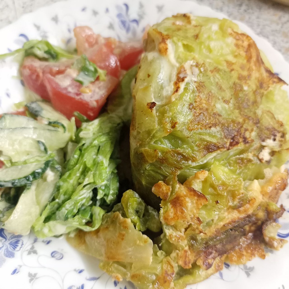 "Нежнятинка, девАчки!", - пропела бы Елена Павловна (акк. Мама отличника). Сейчас самое время молодой белокочанной капусты. Листья только-только стали закручиваться. Очень нежные, ароматные. Манипуляции нехитрые. Найти лёгкий по весу кочан, разрезать на четвертинки, отварить в слегка солёной воде. Потом чуть обжарить с яйцом и готово. Прекрасно, восхитительно, великолепно, брависсимо, одним словом. Чудесное диетическое блюдо. Жаль, что сезон молодой капусты недолог.