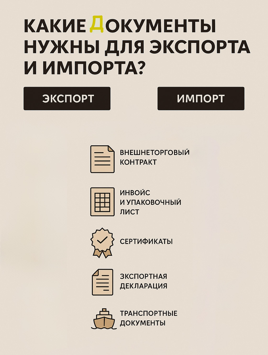 Экспорт и импорт товаров — один из важнейших элементов международной торговли, и успешная работа в этой сфере невозможна без грамотного оформления документов. В 2025 году правила остаются строгими, но при правильной подготовке весь процесс можно сделать понятным и эффективным. Разберём, какие документы требуются для импорта и экспорта товаров из и в Россию на практике. 🔹 Внешнеторговый контракт