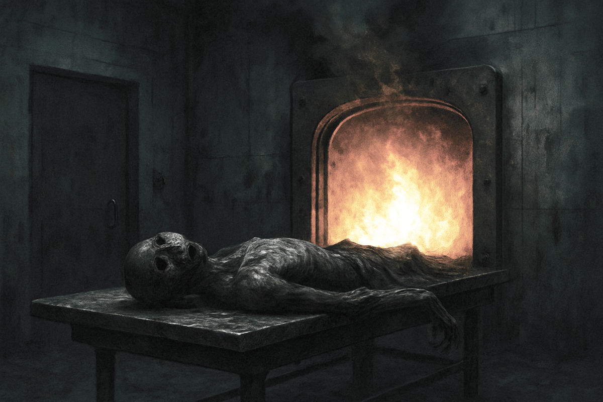Коридоры были узкими, освещёнными тусклыми лампами под потолком. Зал кремации встретил его тишиной и неподвижностью. Печи — огромные прямоугольники чёрного металла — стояли вдоль стен. Каждая с дверцей, промаркированной номером.
