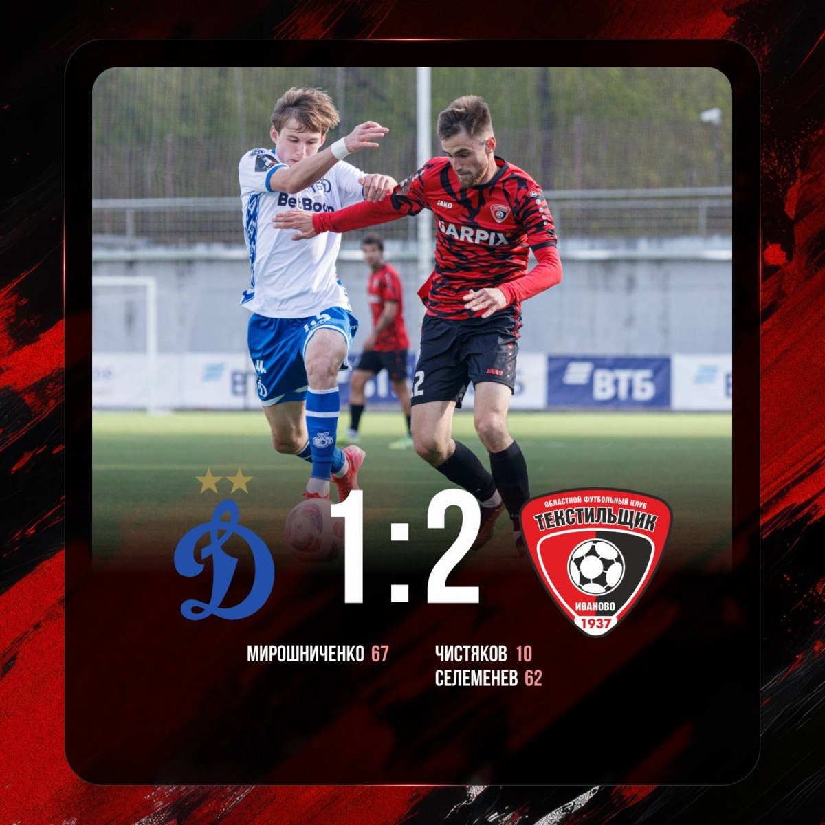 ⚽ Победа ивановского «Текстильщика» на выезде в Москве Стартовал второй круг весенней части первенства ФНЛ-2. 10-й тур в «серебряной» группе футбольный «Текстильщик» провел в Москве в противостоянии с местным «Динамо-2». «Красно-черные» были очевидными фаворитами и уверенно с самого начала матча повели игру. Уже на 11-ой минуте встречи после очередной атаки ивановцев Никита Чистяков вторым темпом отобрал мяч и поразил ворота с линии штрафной площади. Хозяева не планировали сдаваться и в целом имели шансы сравнять счет, хотя «Текстильщик» явно контролировал ход встречи и мог увеличивать свое преимущество Картина не изменилась и во втором тайме. Гости были активнее, что привело к ожидаемому голу — на 62-ой минуте Иван Селеменев после штрафного увеличил разницу в счете. Практически сразу «Динамо» смогло отыграть один мяч, но больше ничего сделать хозяева не смогли. В итоге победа ивановцев на выезде 2:1. Фото, видео: ФК «Текстильщик»