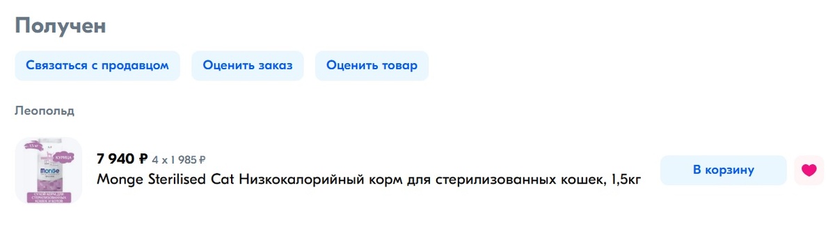 Я практически не пользуюсь услугами маркетплейсов. Вот такой я древний и несовременный человек. Как, кстати, не пользуюсь и доставкой на дом. Предпочитаю сам поехать в магазин и посмотреть, что именно покупаю. Пощупать товар руками, взглянуть на него вживую, оценить, насколько он приятен. Но некоторые вещи купить в магазине невозможно. Сегодня покажу, что пришлось за последние полгода приобретать на Вайлдберриес и Озон, потому что больше нигде не получилось. Начнем с Озона, и сначала с тех удачных товаров, которые я не вернул, а забрал себе. Прежде всего, это корм для кошки, причем не для нашей, а по просьбе родственников. Впрочем, наша кошка ест такой же, но у неё еще много осталось. В профильных зоомагазинах данного сухого корма почему-то не оказалось (хотя вообще он попадается), а нужно было срочно. Еще есть Авито, но мне кажется, что там выше риск нарваться на подделку. Возможно, я заблуждаюсь. В общем, за 7940 рублей было приобретено 4 упаковки низкокалорийного корма Monge (всего