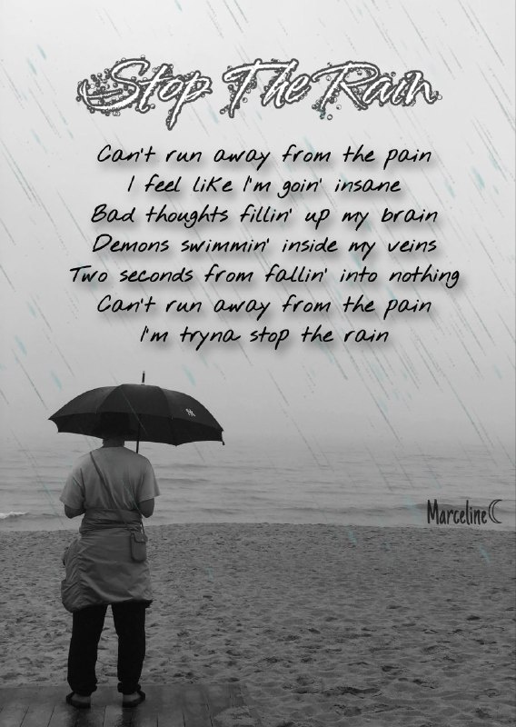 В "Stop the Rain", в отличие от "Forever Rain", дождь — это то, с чем они активно борются. Он представляет собой неизбежный поток внутренних страданий и шрамы от непонимания. Для Табло и Намджуна дождь не нежный и поэтичный, а жесток и беспощаден. Это метафора депрессии, навязчивых мыслей и остатков жизни, отмеченной чувством вины и разочарованием. Они не ищут в нем утешения, они отчаянно пытаются остановить его. Дождь становится физическим проявлением их закручивающихся мыслей, их эмоциональной нестабильности, их борьбы за то, чтобы удержаться на плаву среди ментального хаоса. Он обливает их воспоминаниями, которые они предпочли бы забыть, и чувствами, от которых они предпочли бы убежать. Однако, несмотря на их усилия, ливень продолжается, что говорит о том, что боль, как и дождь, часто не поддается контролю: непрошеная, неумолимая и глубоко личная.