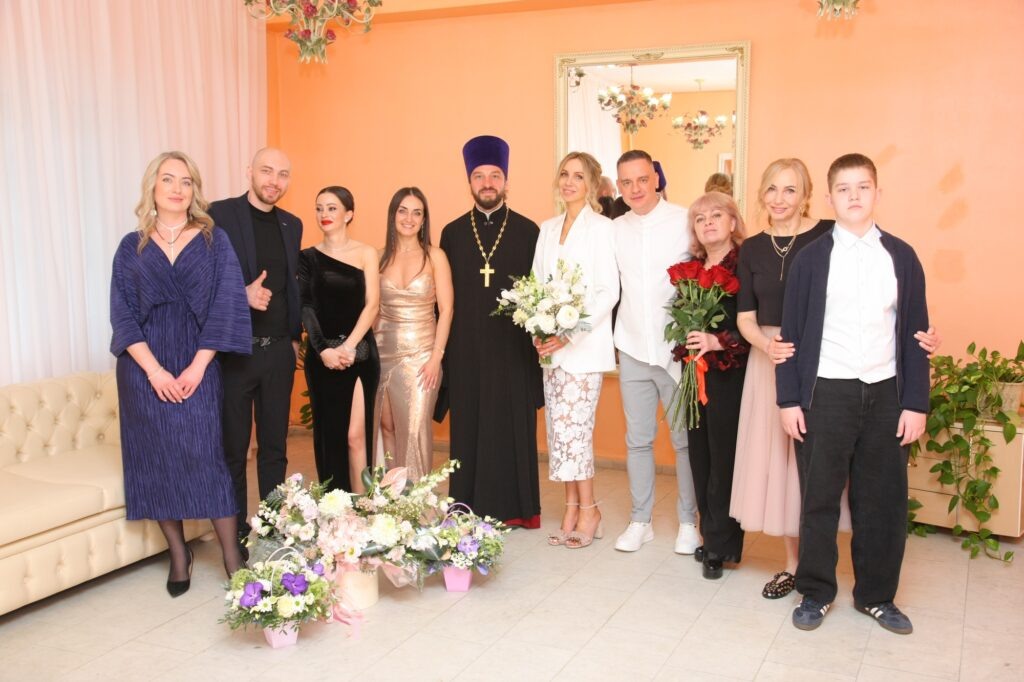 После официальной церемонии регистрации брака иерей Александр обратился к молодожёнам с напутственными словами, пожелал счастья, мира и радости семейной жизни. Пастырь напомнил, что Любовь – Божий дар, который требует от нас ежедневных усилий и жертвенности. В завершение иерей Александр благословил супругов иконой Божией Матери и вручил её молодожёеам на молитвенную память. Священник напомнил о том, что во время Антипасхи в храмах начинает совершаться Таинство Венчания после великопостного периода.