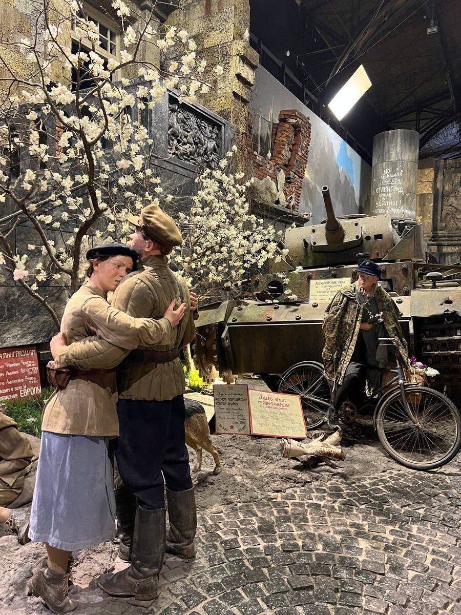 Это то место, которое я рекомендую посетить перед 9 мая, вы проникнитесь героизмом нашего народа и его сильным духом. Инсталляция поражает воображение - она расположилась в одном павильоне «Ленфильма» на площади 1500 кв.м. Всего 15 больших залов, где воссозданы в натуральную величину горный перевал, переправа, деревенский дом и сад, вы побываете внутри самолета, на берлинских улочках с зданиями, увидите макеты техники, будто живые фигуры героев и многое другое. А для полного погружения вам выдадут аудиогид, который станет вашим проводником на выставке с рассказом, состоящим из писем.