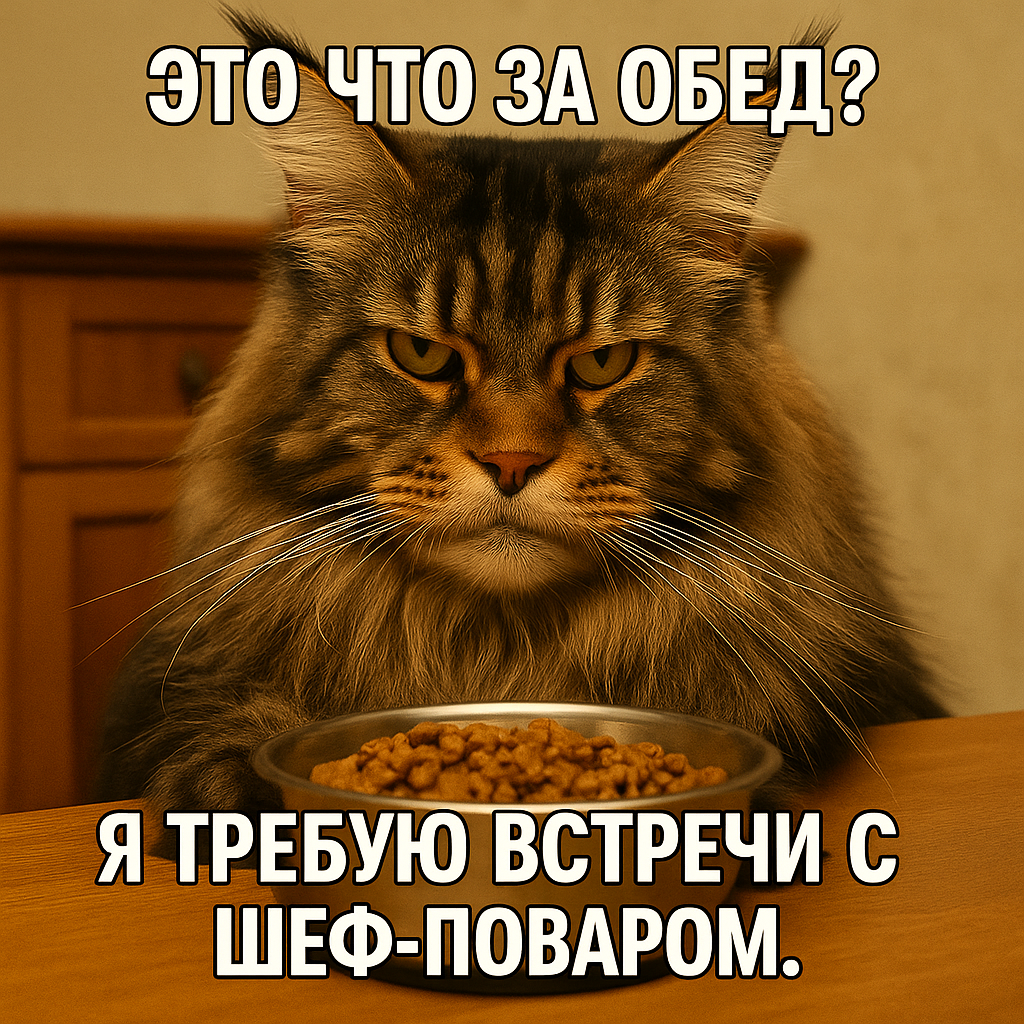 А твой кот устраивал сцену перед миской? Делись историями в комментариях — нам нужно собрать рейтинг самых требовательных пушистиков! — Да, я заняла весь диван. Нет, твоё мнение меня не интересует. Королевы не спрашивают разрешения.