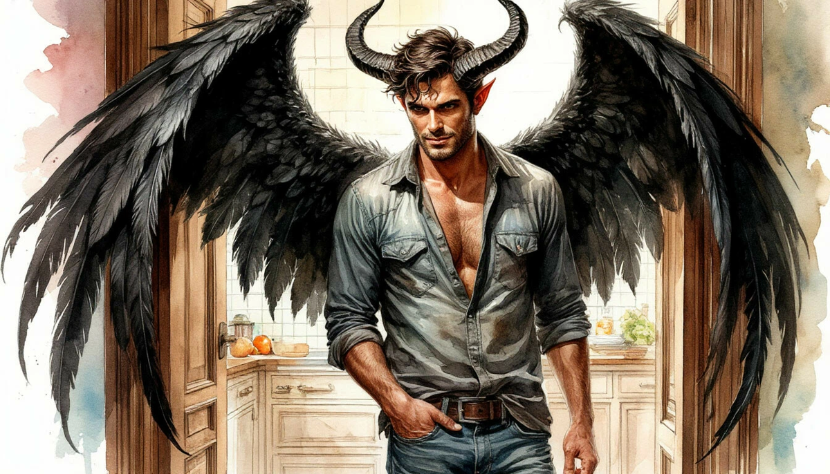На кухне в тёткином цветастом переднике, суетился у плиты демон, аккуратно переворачивая на сковороде умопомрачительно пахнущие кусочки мяса.