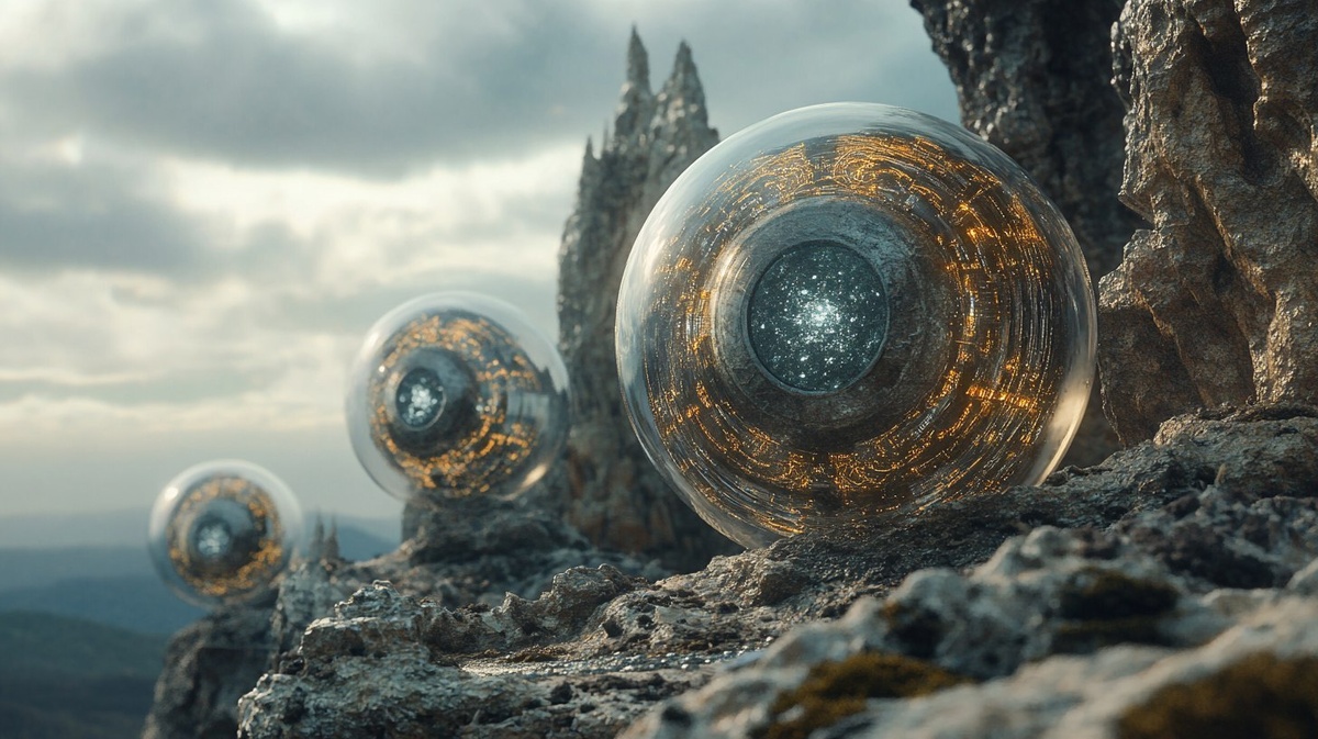 Создано на основе запроса: A micro environment, Concept art, surreal environment of spheres, a movie still, UHD 64K resolution, Topaz