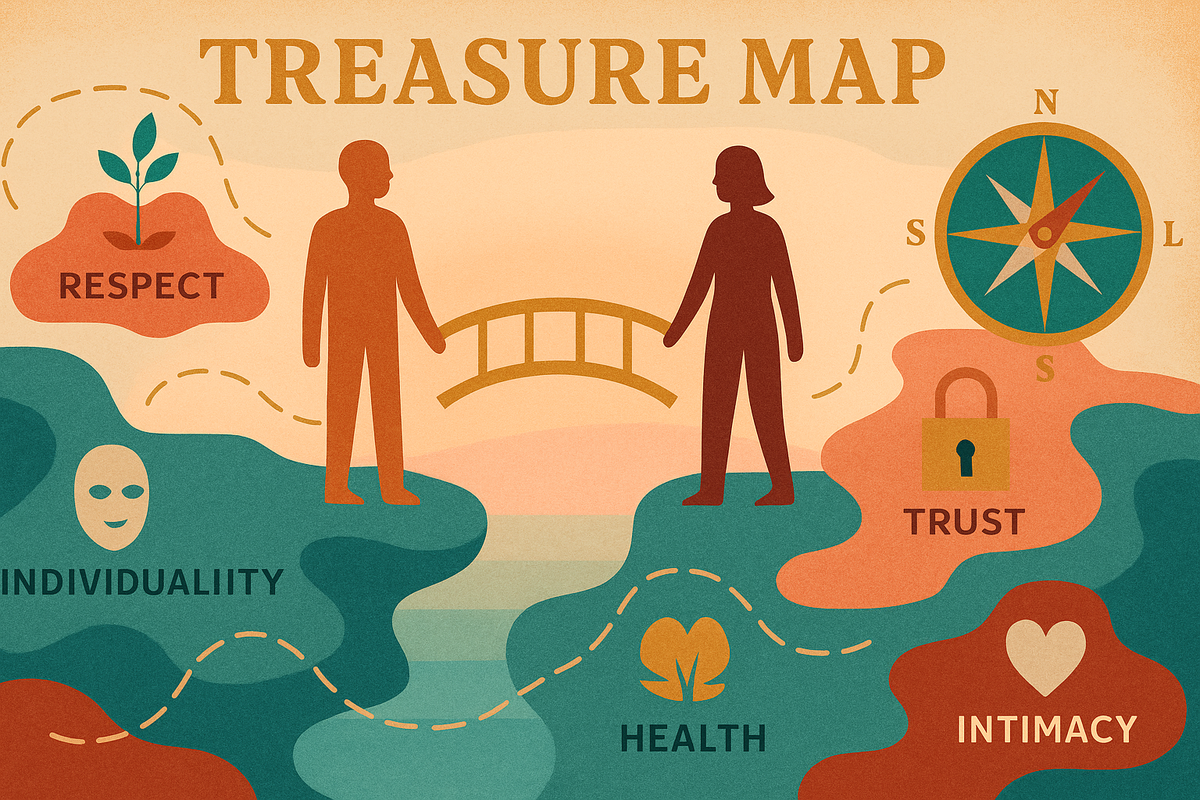 Помнишь, как в детстве мы мечтали найти карту сокровищ? Потрёпанный пергамент с секретными знаками, пунктирными линиями и крестиком, отмечающим место, где зарыт заветный клад. Здоровые отношения — это тоже своего рода сокровище, только карту к ним никто не выдаёт при рождении. Эту карту мы чертим сами, часто методом проб и ошибок, иногда сбиваясь с пути и начиная заново.
