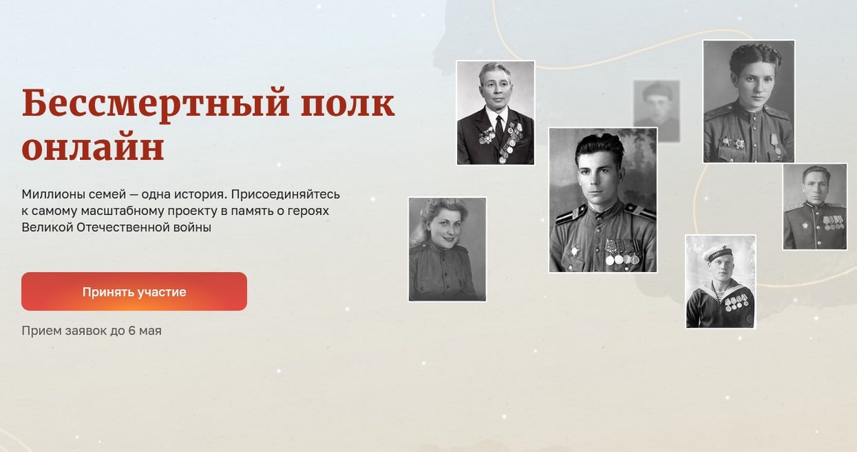 Всех желающих, включая школьников, студентов, педагогов и жителей зарубежья, приглашают принять участие во Всероссийской акции "Бессмертный полк онлайн". Заявки принимаются до 6 мая. Необходимо разместить фото и данные о ветеране Великой Отечественной войны на сайте акции. В 2025 году появилась возможность реставрации и колоризации фотографий, а также публикации историй в соцсетях "ВКонтакте" и "Одноклассники". 📆Онлайн-акция пройдет 9 мая, обеспечивая сохранение памяти о ветеранах. Акция в этом году пройдет в смешанном формате. В регионах, где позволяет безопасность, она пройдет очно.