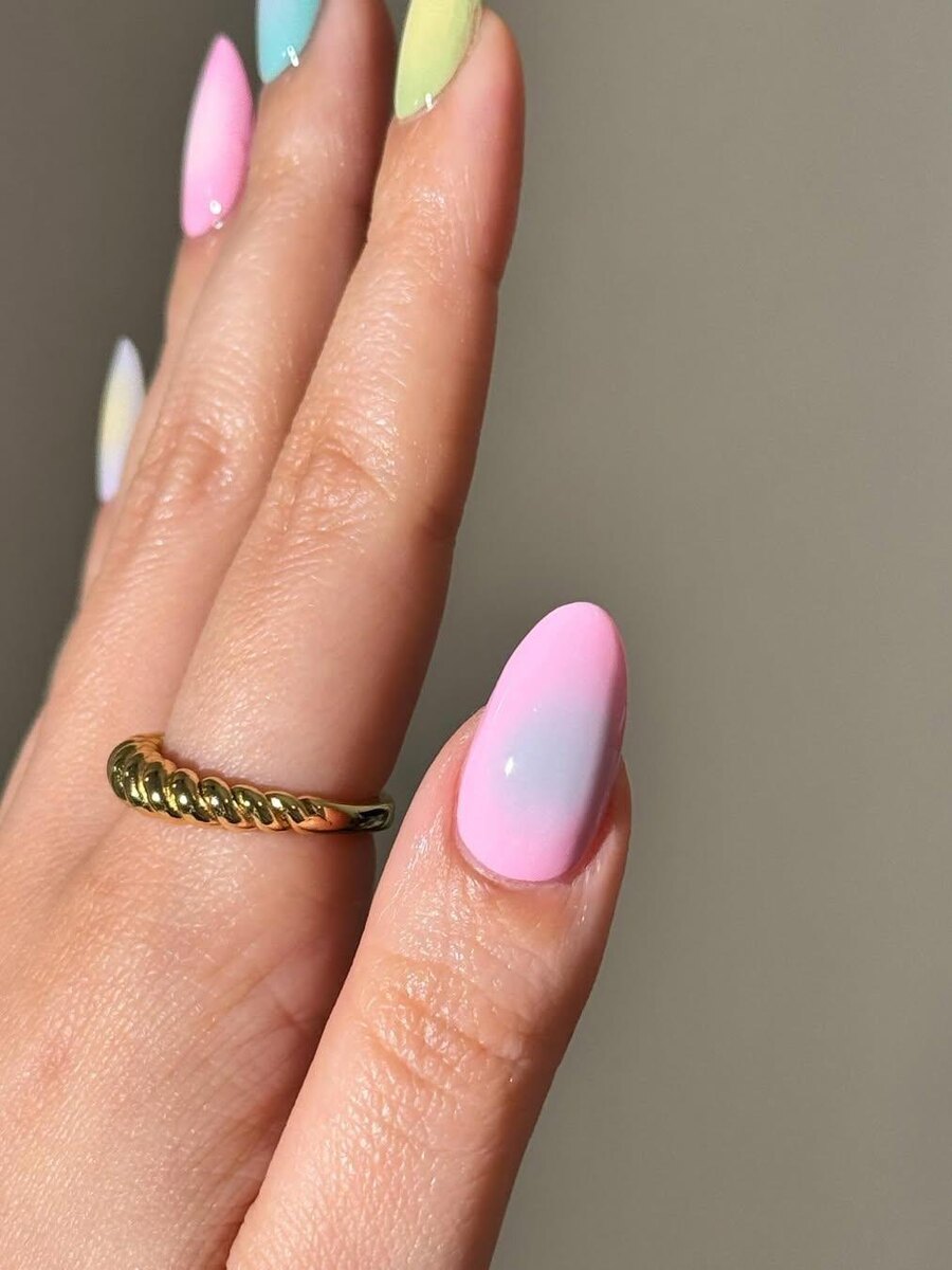 Объединив два главных тренда сезона — мягкие оттенки и визуальную игру света («эффект ауры»), получите идеальный маникюр. Эта техника создает ощущение легкой радуги вокруг каждого ногтя, наполняя руки особенным очарованием. Попробуйте сочетать разные тона мягкой гаммы: нежно-лиловую, мятную, бледно-розовую и салатовую.