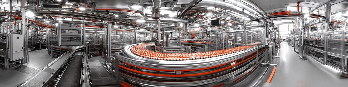Создано на основе запроса: hyperealistic panoramic photography of a sknicare filling production line