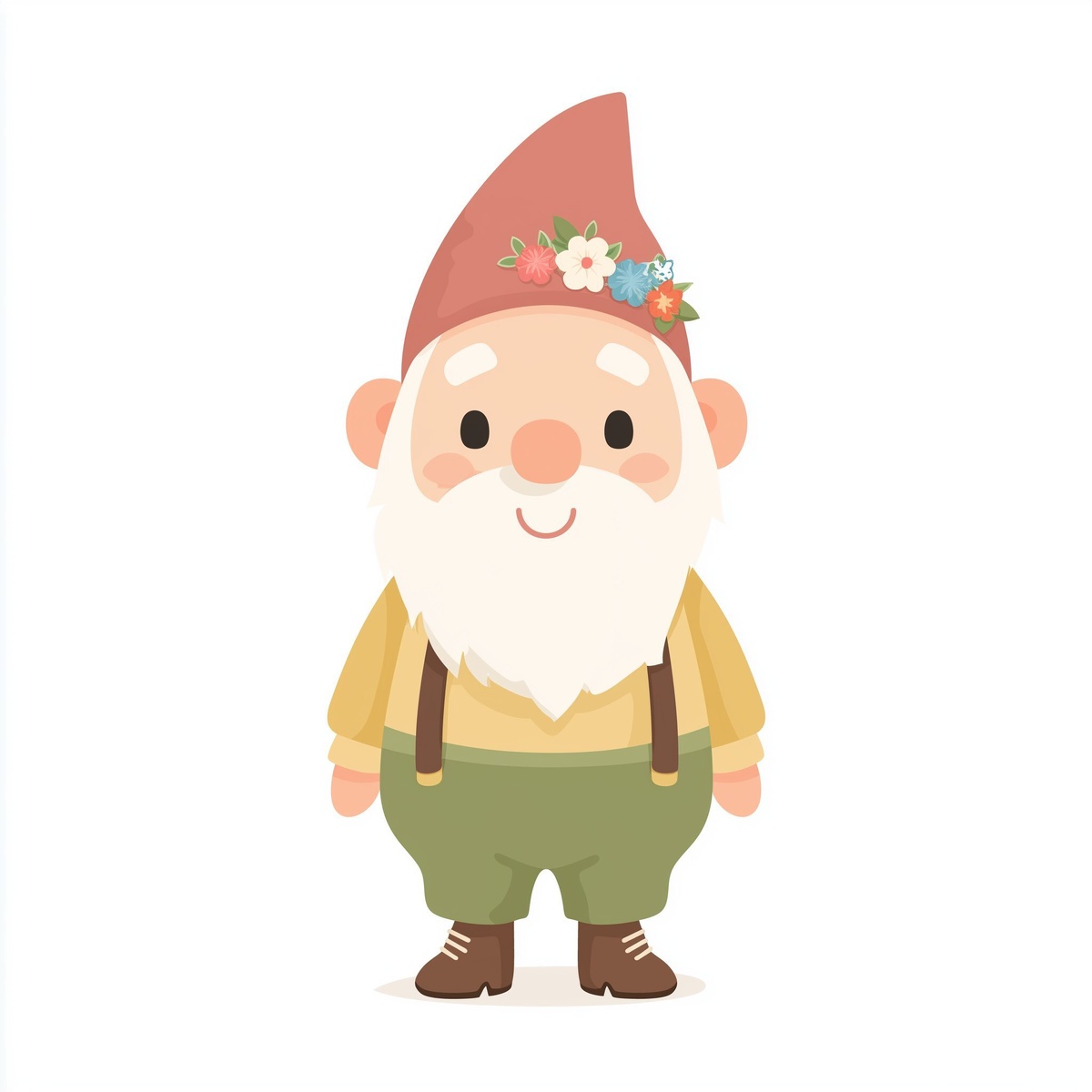 Создано на основе запроса: one gnome, flat vector style, very cute, no shadow, white background