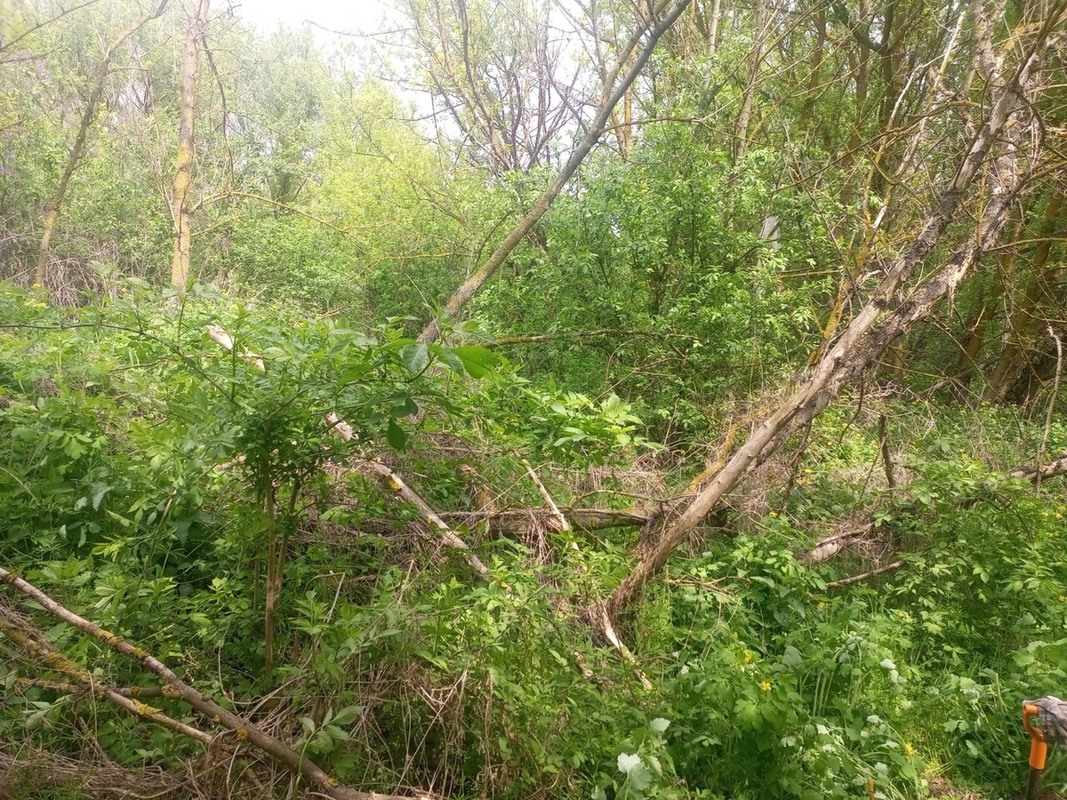 Приветствую друзья. Любите металлопоиска и старины. Получилось так, что по старине практически перестал ходить. Потому что за 5-6 часовой коподень за счастье было выкопать хотя бы 2 монетки. Поэтому перешел на металлолом. Уже какой год цена весной всегда повышалась. А этот год особенный, цена как упала прошлым летом, так и не поднялась. Сейчас у нас 14-15 рублей, знаю, что в некоторых регионах опустилась и до 7 рублей. Но копать хочется и как бы по привычке поехал копать. Знаю один фундамент недалеко от дома и вот решил туда заскочить, что из этого вышло: Вот в этих зарослях находится советский фундамент. Но я не стал пока туда лезть а походил возле него и по двору. Звенело конечно повсюду. Очень много жести, но находки не заставили себя ждать. Мелкие куски металла, кусок расчески и даже ручка от скакалки (позже найду и вторую). Начало положено. Рядом копнул и достал женский туфель и бутылочку из-под лекарства. Пришлось чуть ли не шурфить вокруг. И вот полез советский инструмент: Потом