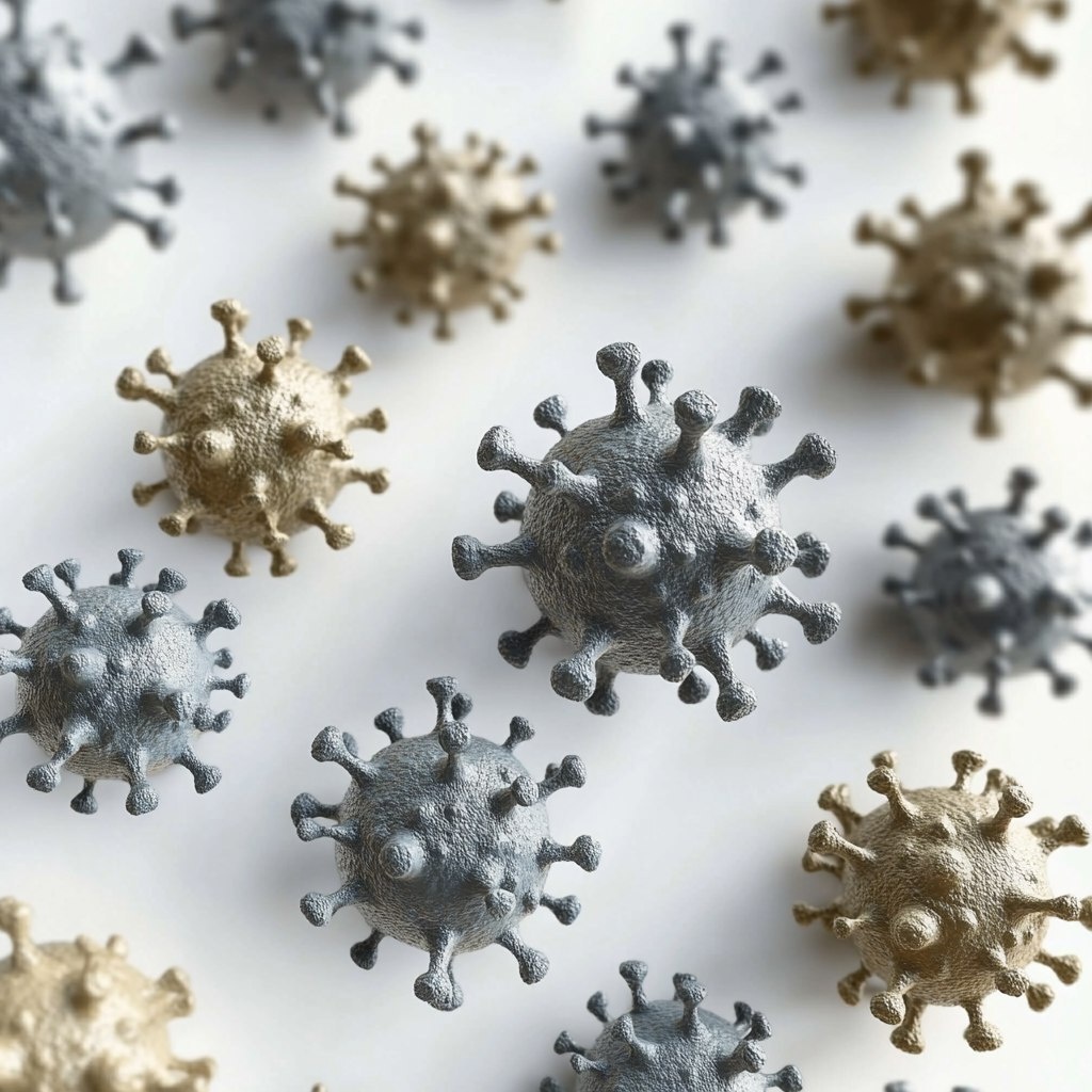 Создано на основе запроса: many viruses of various kinds, neutral white background, 3d rendering