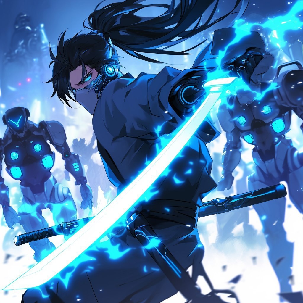 Создано на основе запроса: male cyborg samurai, long black hair in a pony tail, wearing a samurai outfit, robots in the background with glowing blue eyes, glowing blue eyes, wielding a katana covered in blue energy, dynamic background --- Автоперевод: Самурай -киборг -киборг, длинные черные волосы в хвосте с понижом, в костюме самураев, роботами на заднем плане со светящимися голубыми глазами, светящимися голубыми глазами, обладая катаной, покрытой голубой энергией, динамичным фоном Классно выглядит? 🤔 https://dzen.ru/id/65c0c65c86e4f837c27b24d7 #ИИ #AI #нейросеть #midjourney #art