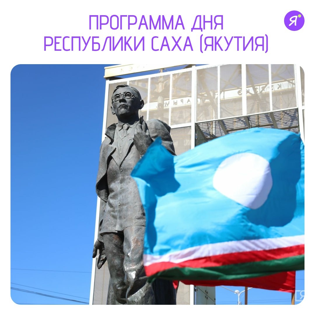 🤩 Программа празднования Дня Республики в Якутске #ВГороде 11:00 | Возложение цветов к памятникам государственным и политическим деятелям Якутии. 12:00–14:00 | Цирковая сказка по мотивам олонхо «Дыырай Бэргэн и трехглавый Луо Балык» (Сахацирк). 13:30 | Торжественное вручение знаков ГТО (площадь Дружбы). 14:00 | Парад молодежных организаций (от площади Дружбы до площади Республики). 15:00 | Праздничный концерт и осуохай (площадь Республики). 15:00–16:30 | Концерт «Любовь моя - песня якутская» (Дом дружбы народов им. А.Е. Кулаковского). 18:00–20:30 | Симфонический концерт (Театр оперы и балета им. Д.К. Сивцева – Суорун Омоллоона). 21:00 | Автопробег (маршрут: Үс Хатыҥ → Комсомольская площадь). Online Якутия | Подписаться