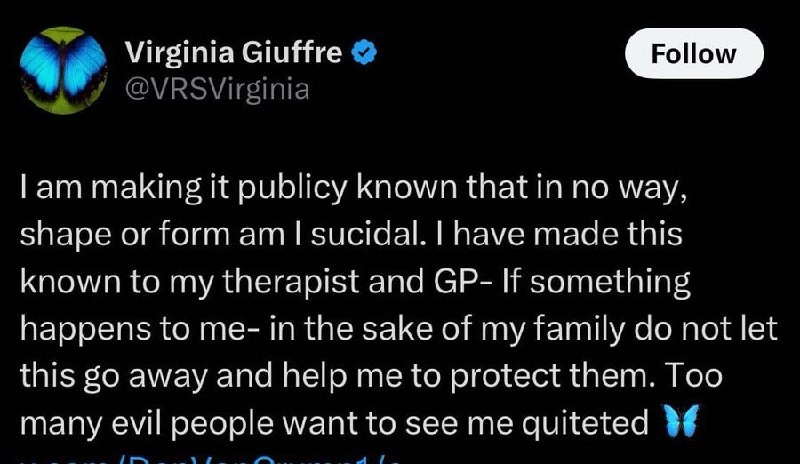 'No way am I suicidal, evil people want me quieted' — Epstein top victim who just committed suicide