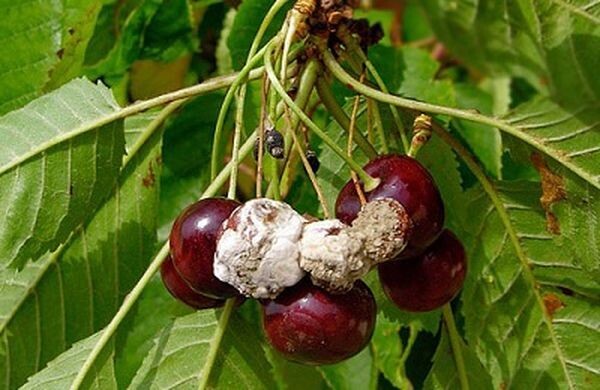 Коккомикоз – вызывает гриб, поражающий листья вишни, появляясь на них в виде буроватых красных точек, затем сливающихся в пятна. Заражённые листья преждевременно осыпаются, в результате дерево уходит в зиму неподготовленным к морозам и может погибнуть. Плоды деформируются и становятся непригодными в пищу.