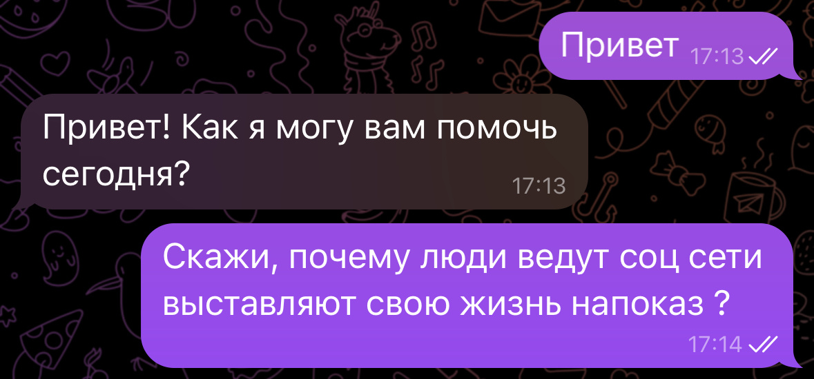 Сегодня моим собеседником была нейронка . И вот какой интересный диалог у нас получился .