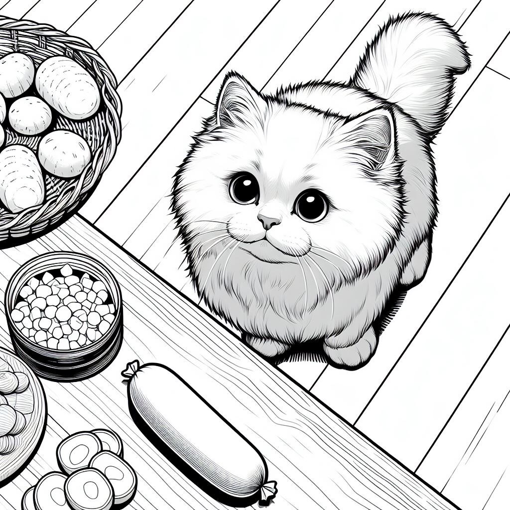 Бесплатная раскраска-история "Хитрый котёнок" (5 рисунков)