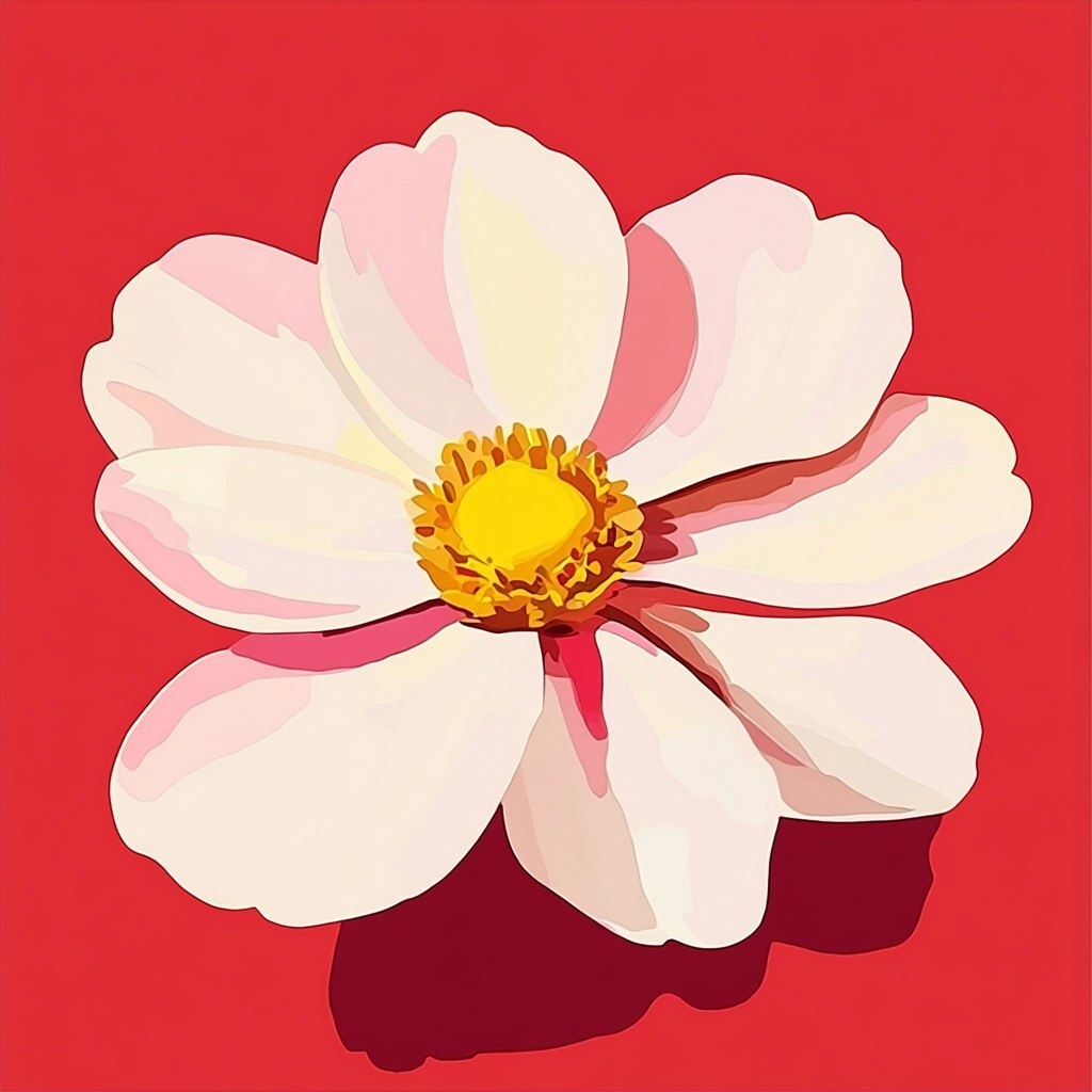 Создано на основе запроса: Minimalist flower illustration in a modern abstract style, large pink organic petals with a bold yellow center, bright red background, clean and simple composition, no candles, soft flat colors, inspired by trendy wall art decor, high resolution, artistic and elegant look --- Автоперевод: Минималистская иллюстрация цветов в современном абстрактном стиле, большие розовые органические лепестки с смелым желтым центром, ярко -красный фон, чистый и простая композиция, без свечей, мягкие плоские цвета, вдохновленные модным декором искусства стены, высоким разрешением, художественным и элегантным видом Как тебе этот вариант? 🤔 https://dzen.ru/id/65c0c65c86e4f837c27b24d7 #ИИ #AI #нейросеть #midjourney #art