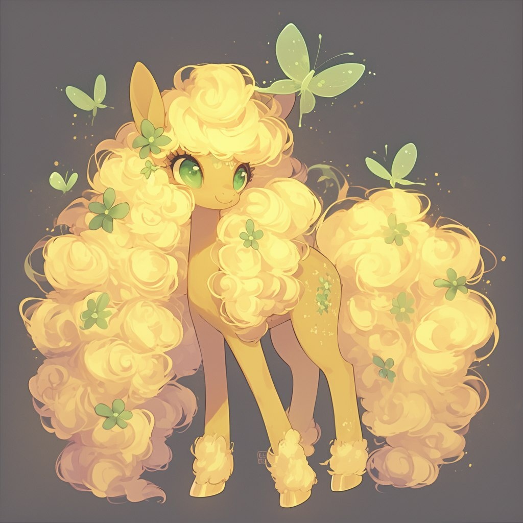 Создано на основе запроса: A full-length yellow pony with a white mane and green eyes --- Автоперевод: Желтый пони с полной длиной с белой гривой и зелеными глазами Как тебе такая иллюстрация? 🤔 https://dzen.ru/id/65c0c65c86e4f837c27b24d7 #ИИ #AI #нейросеть #midjourney #art