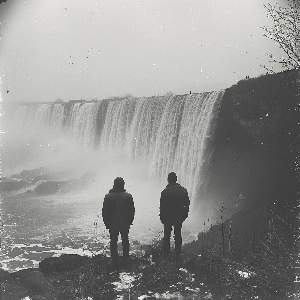 Создано на основе запроса: two menn standing at the top of niagara falls. They are silloetted so we can just make out theri dhapes. Photo real cinematic 16mm grainy Georgia O keepfe vibes. CLoud day --- Автоперевод: Два Менна стоят на вершине Ниагарского водопада. Неплохо вышло? 🤔 https://dzen.ru/id/65c0c65c86e4f837c27b24d7 #ИИ #AI #нейросеть #midjourney #art