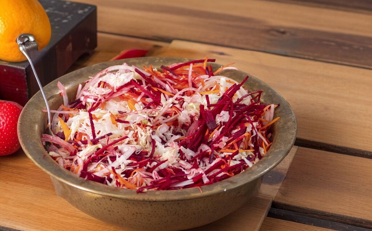 Этот салат сочетает хрустящие овощи, солёную нотку и лёгкую остроту. Идеален к шашлыку, мясу или как самостоятельная закуска.
